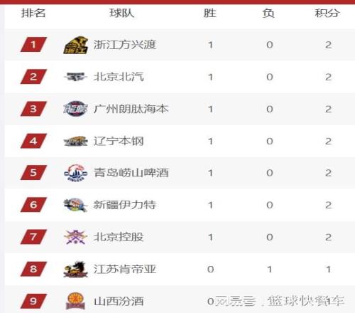 先说说首轮比赛的具体情况吧。目前,首轮比赛还没有完全结束,广东、同曦、浙江、吉林、上海以及宁波,这6支球队还没有登场,他们在积分榜上也没有积分,暂时排在积分榜第15-20名之间。首轮比赛,广厦、新疆、广州、北京、辽宁、青岛以及北控,这7支球队全部赢球,他们的战绩都是1胜0负,获得2分积分。而山西、天津、山东、江苏、福建、深圳以及四川,这7支球队在首轮都输了,暂时只获得1分的积分。