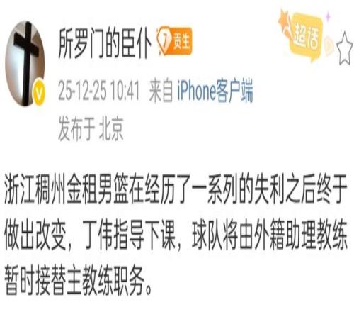 而开局1胜4负的浙江男篮也选择了不继续等待,CBA名帅丁伟确定下课,目前球队暂时由外籍教练带队,对于丁伟来说,夏天刚带领浙江男篮拿到了全运会的银牌,新赛季这么快就下课恐怕也是有点意外。