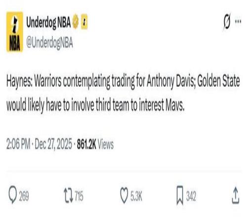 而此前名记Chris Haynes才爆出勇士队有意得到浓眉哥,为了配平合同,勇士队大概率需要送走追梦或者巴特勒。