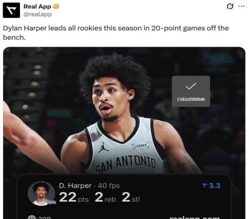 马刺队连续3年淘到宝!建队基石文班缺席的情况下,新科榜眼哈珀扛起进攻大旗,替补轰22分独占25年新秀第一。